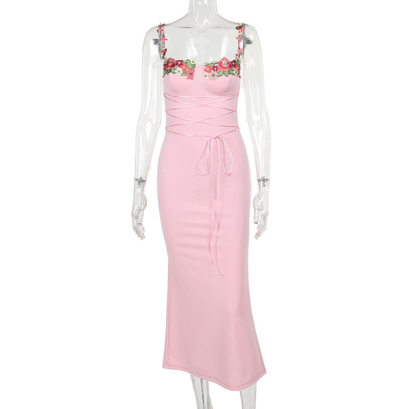 Chest cup decal waist strap spicy girl wrapped buttocks long skirt