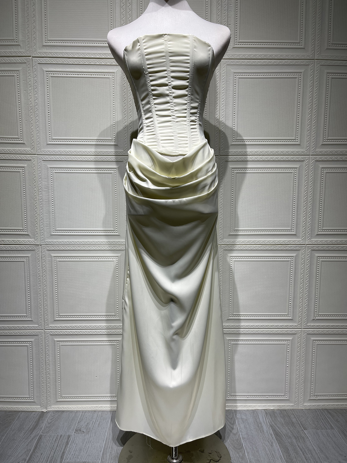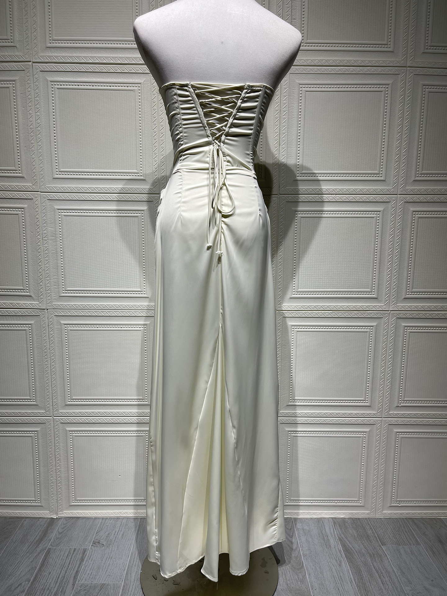 Halter Sexy Strapless Boned Fitted Bodycon High-Grade Satin Long Dress