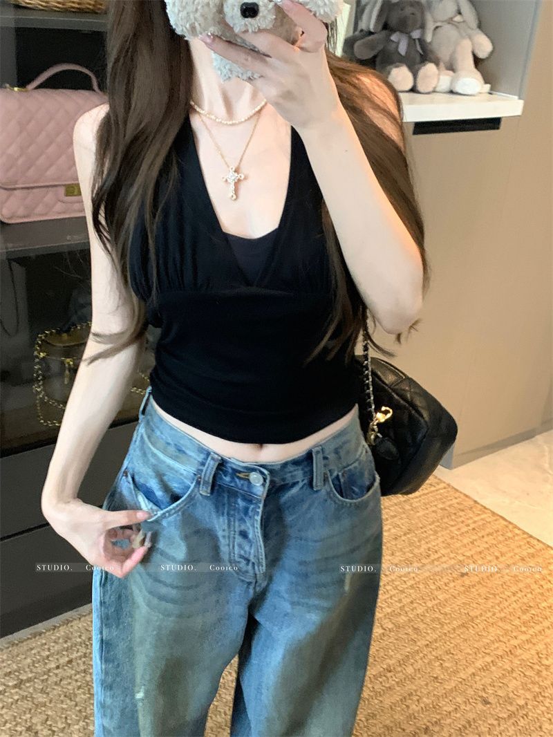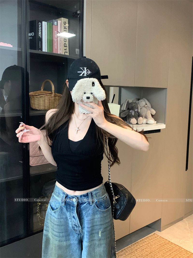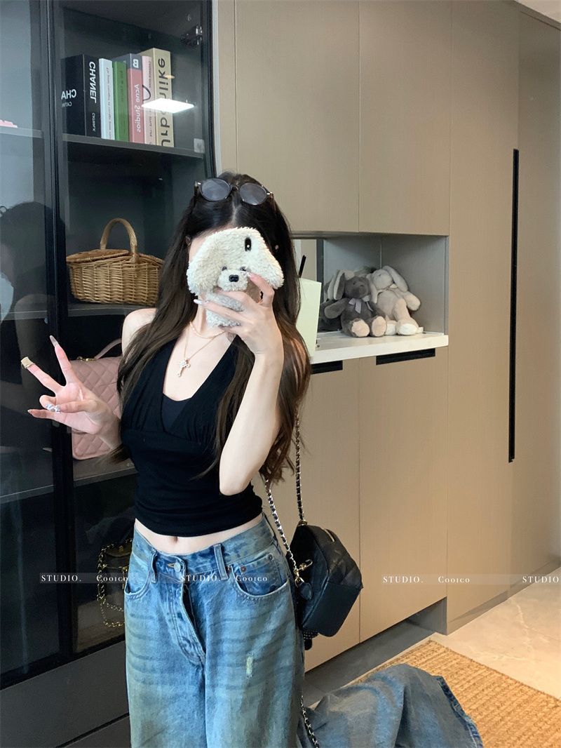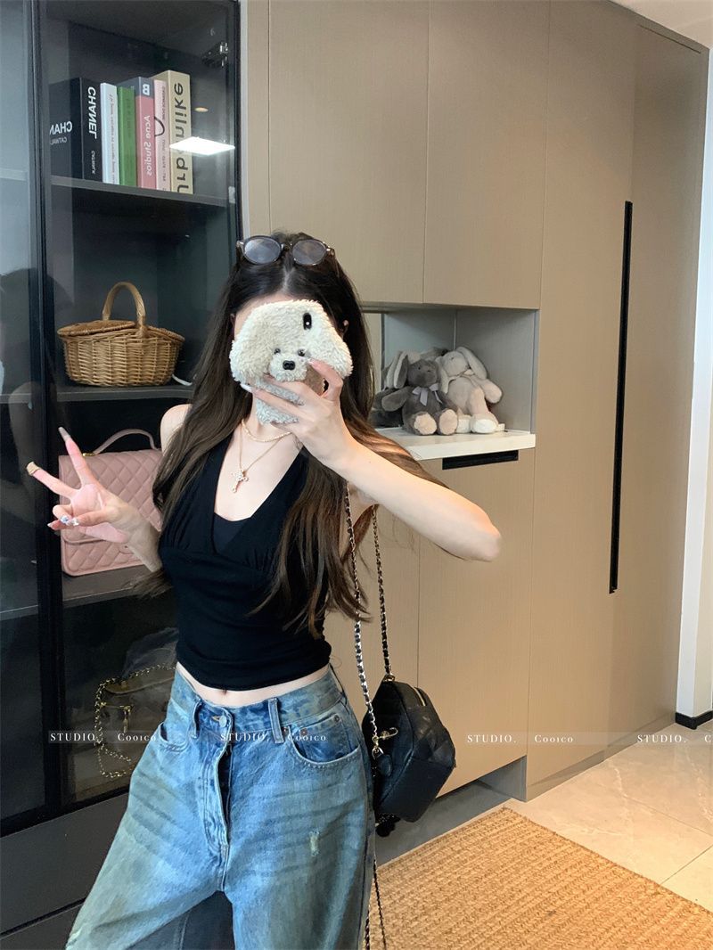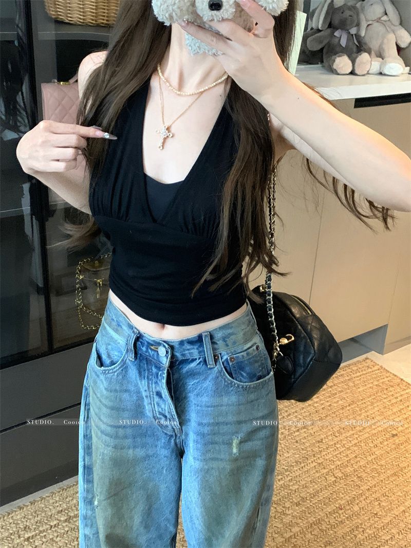 Sexy Backless Halter Neck Strapless Crop Top for Women Spicy Girl Tie Design Short Section Blouse