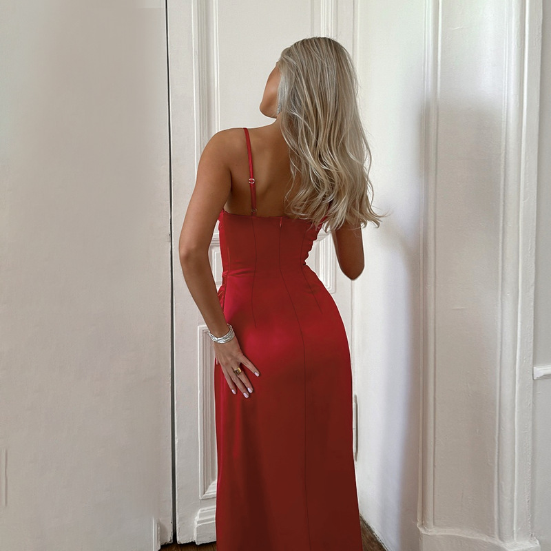 Strappy Sexy Slit Satin Evening Dress Women Long Dress