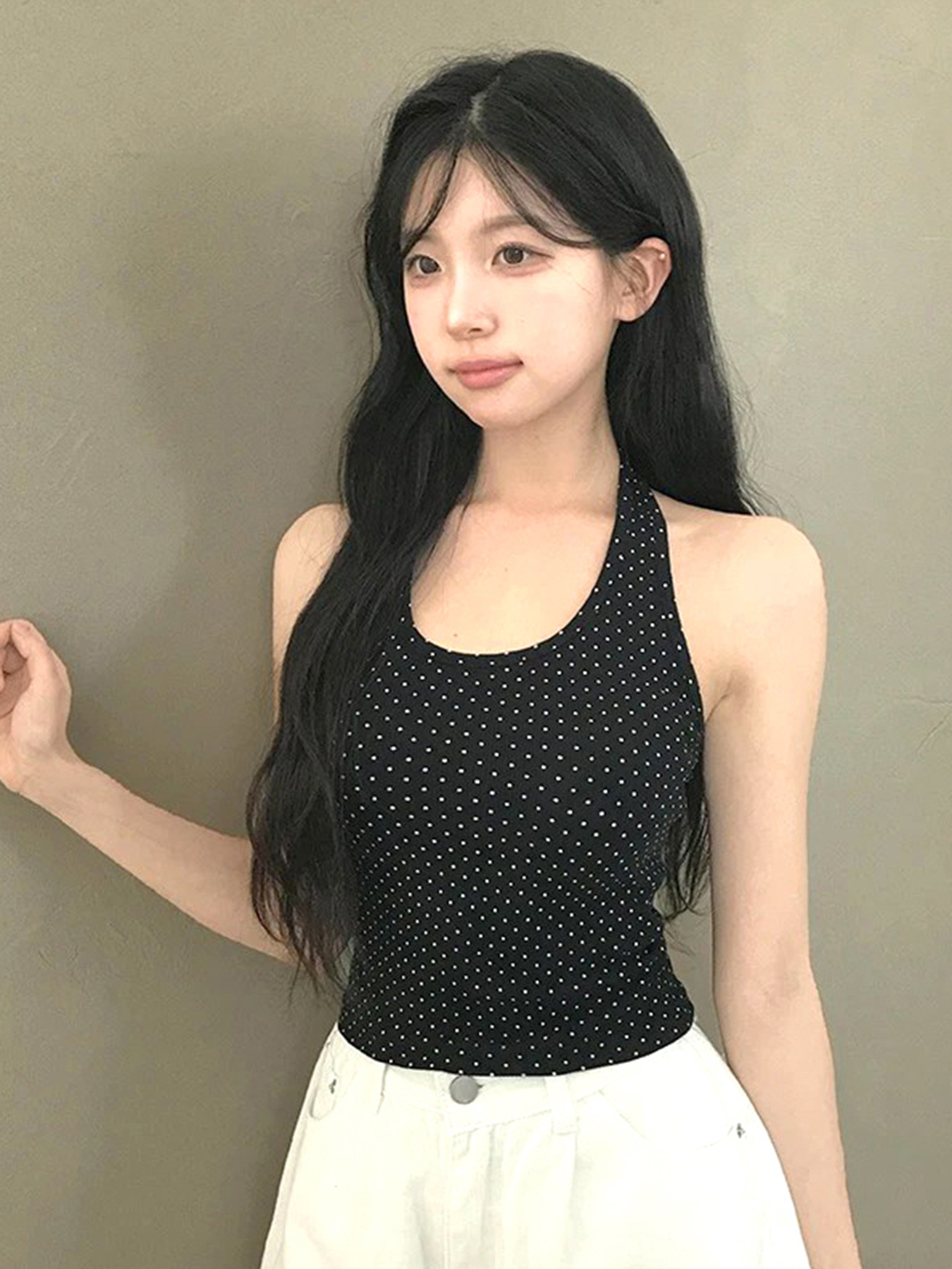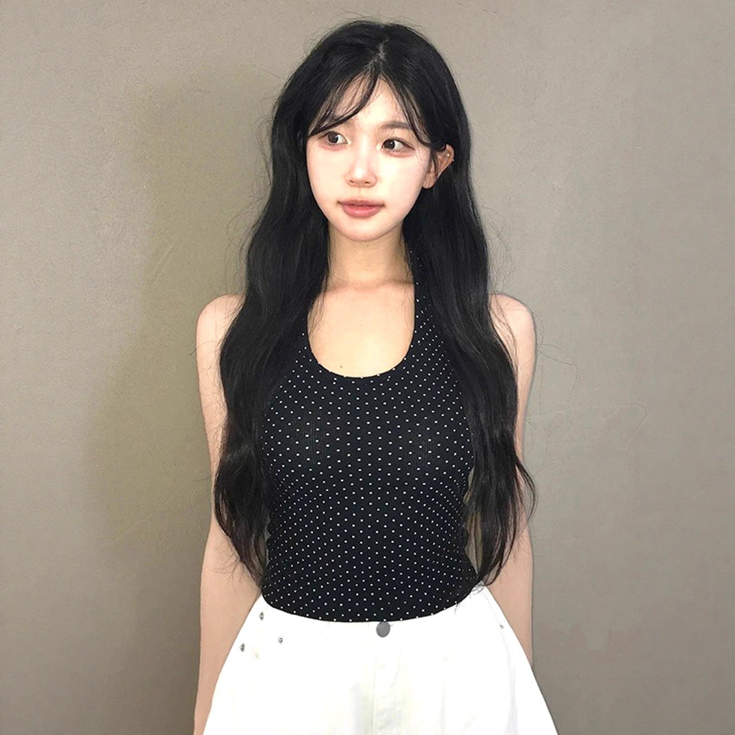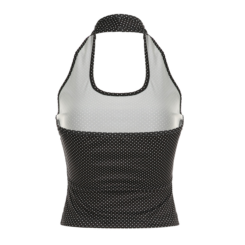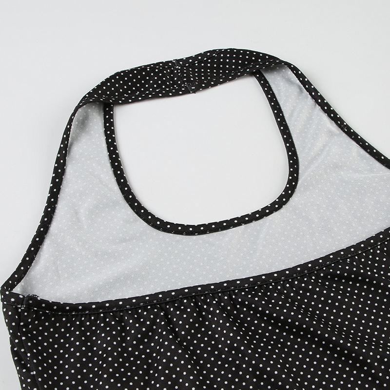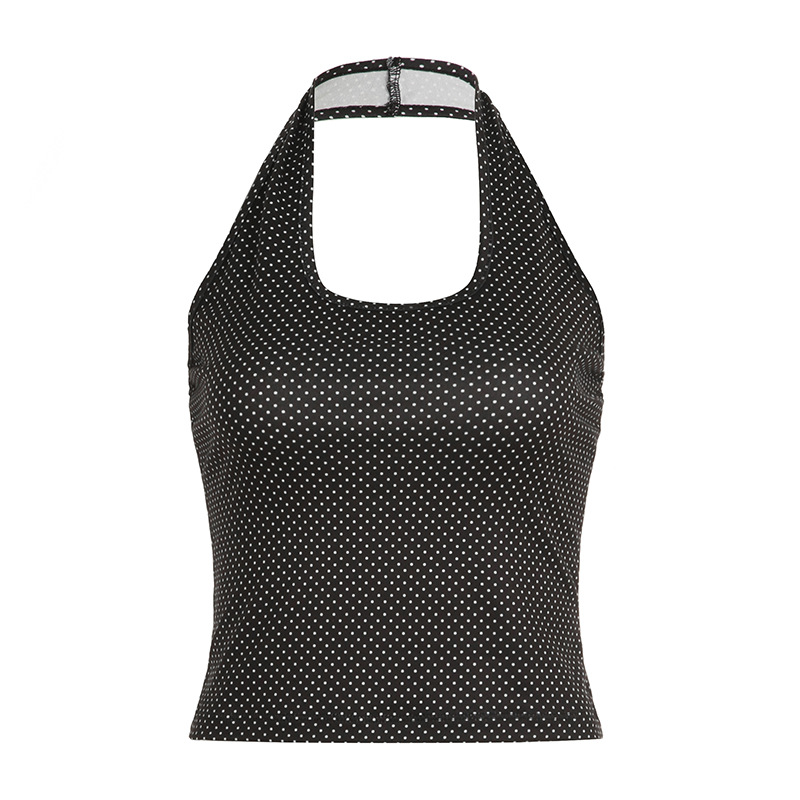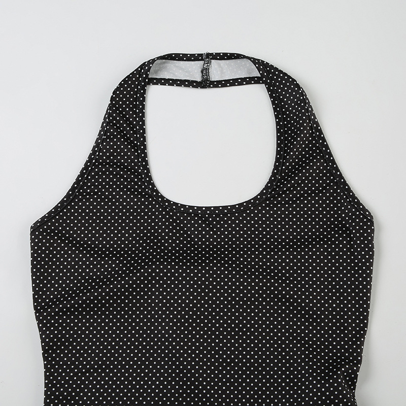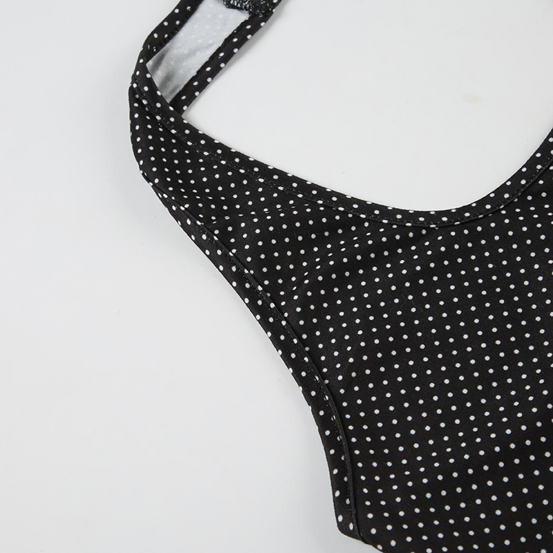 Sweet and Pure U-neck Polka Dot Halter Tank Top Basic Summer Fitted Sexy Short Sleeveless Top