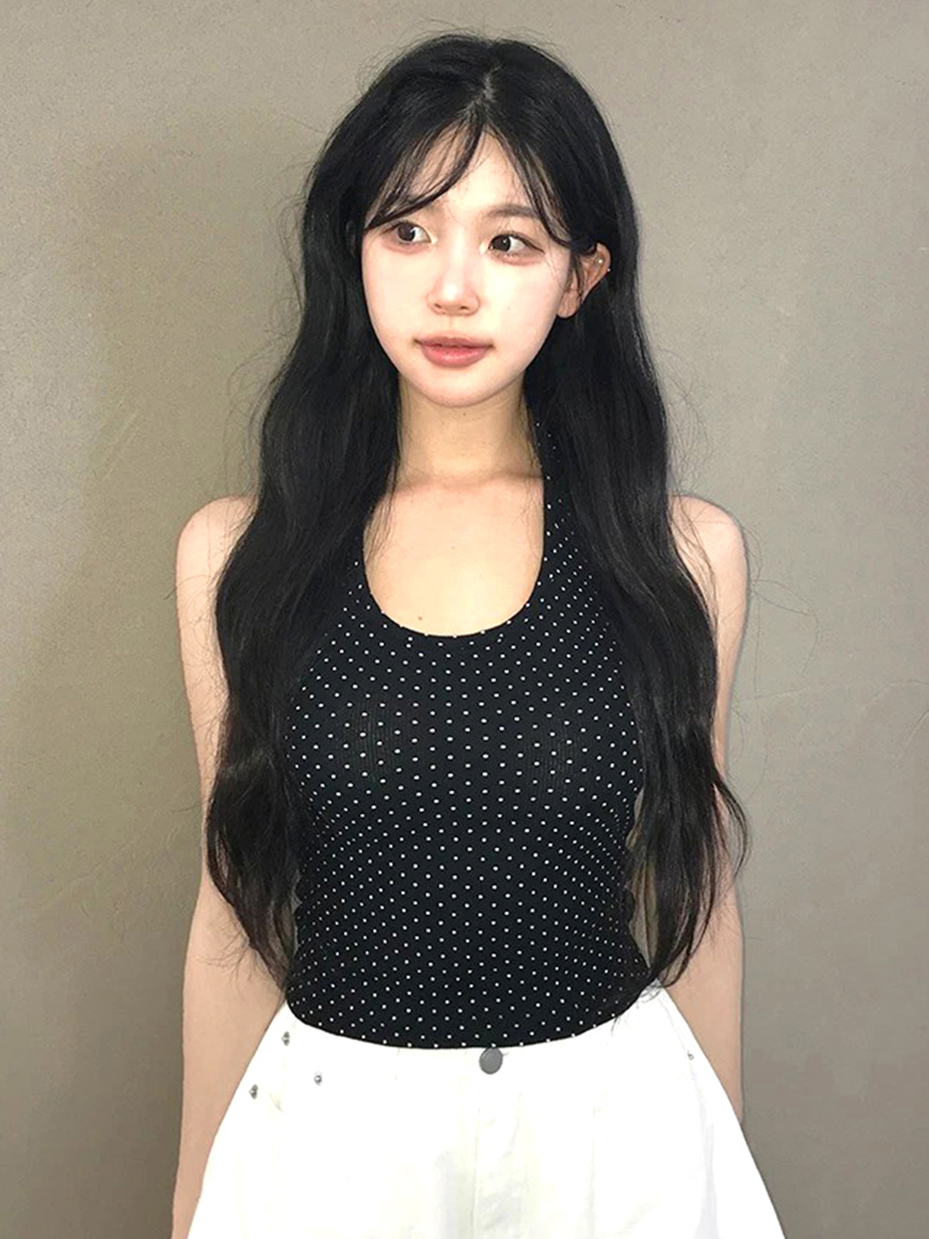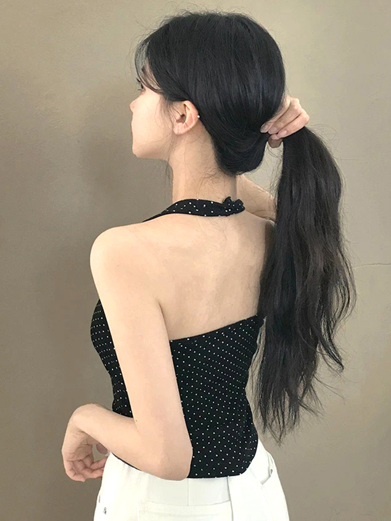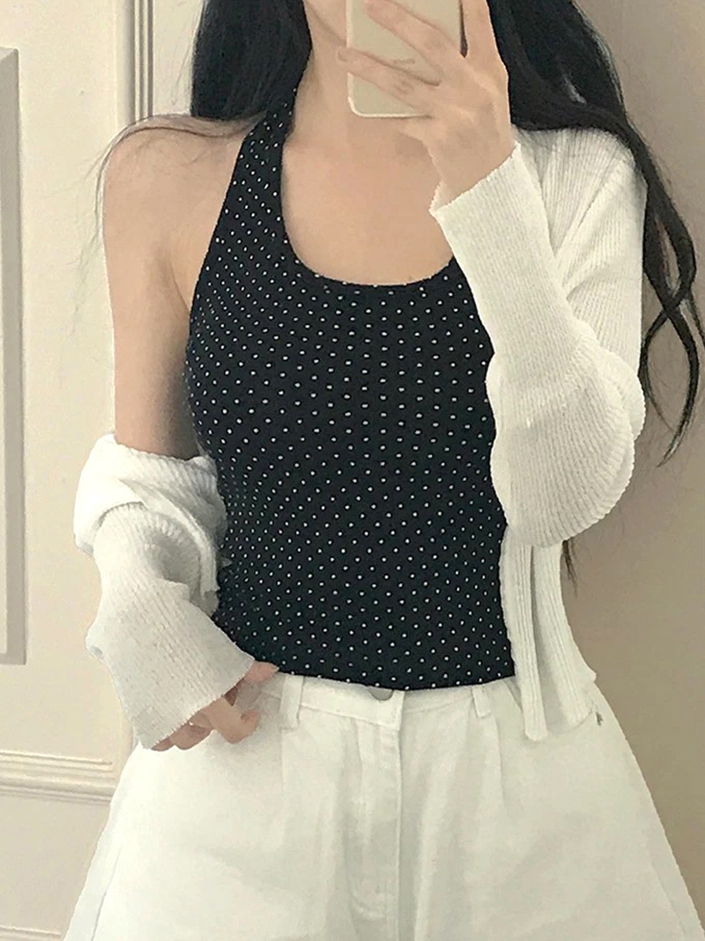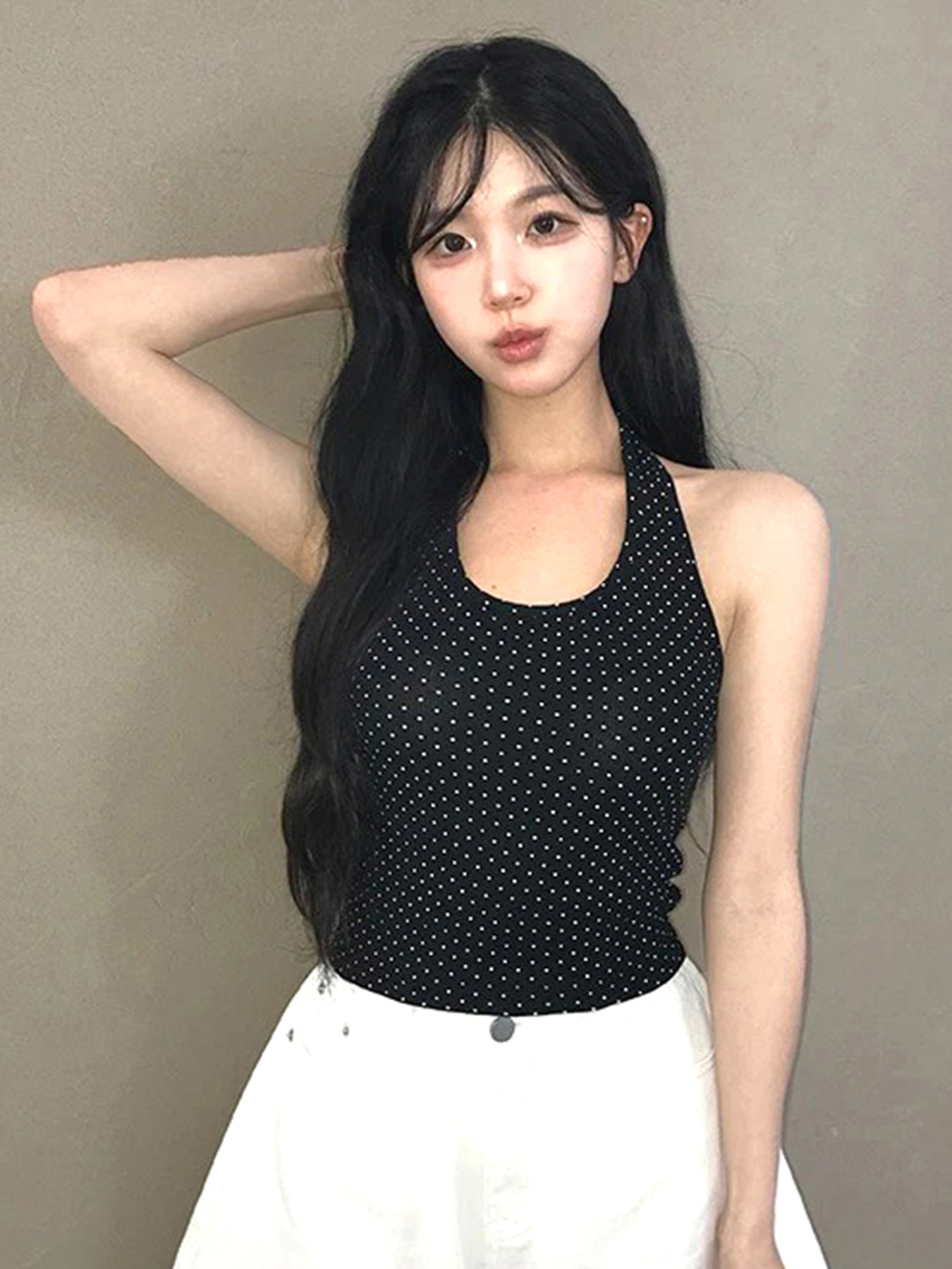 Sweet and Pure U-neck Polka Dot Halter Tank Top Basic Summer Fitted Sexy Short Sleeveless Top