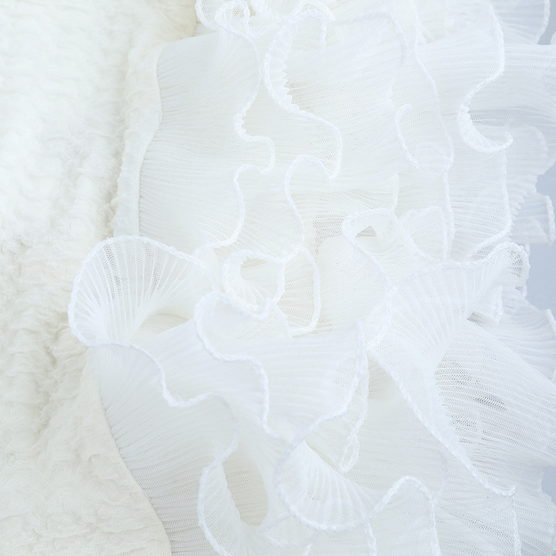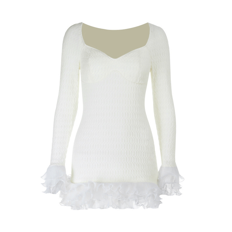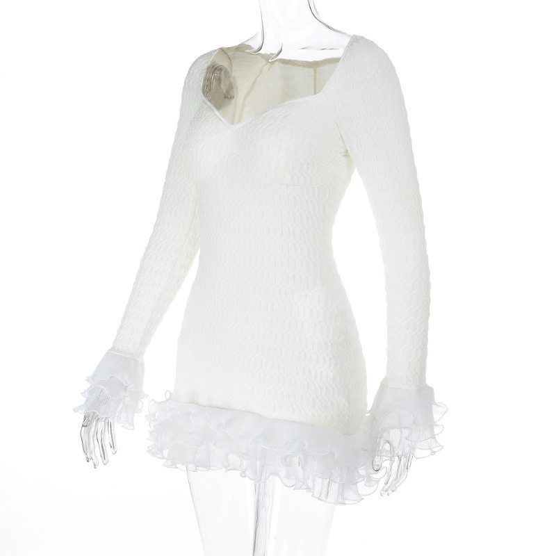 Texture rolled lace decorative long sleeved dress