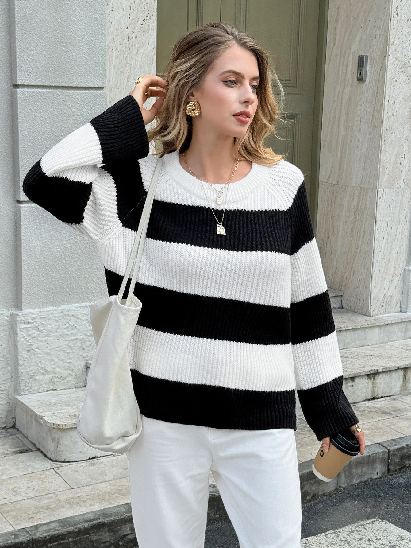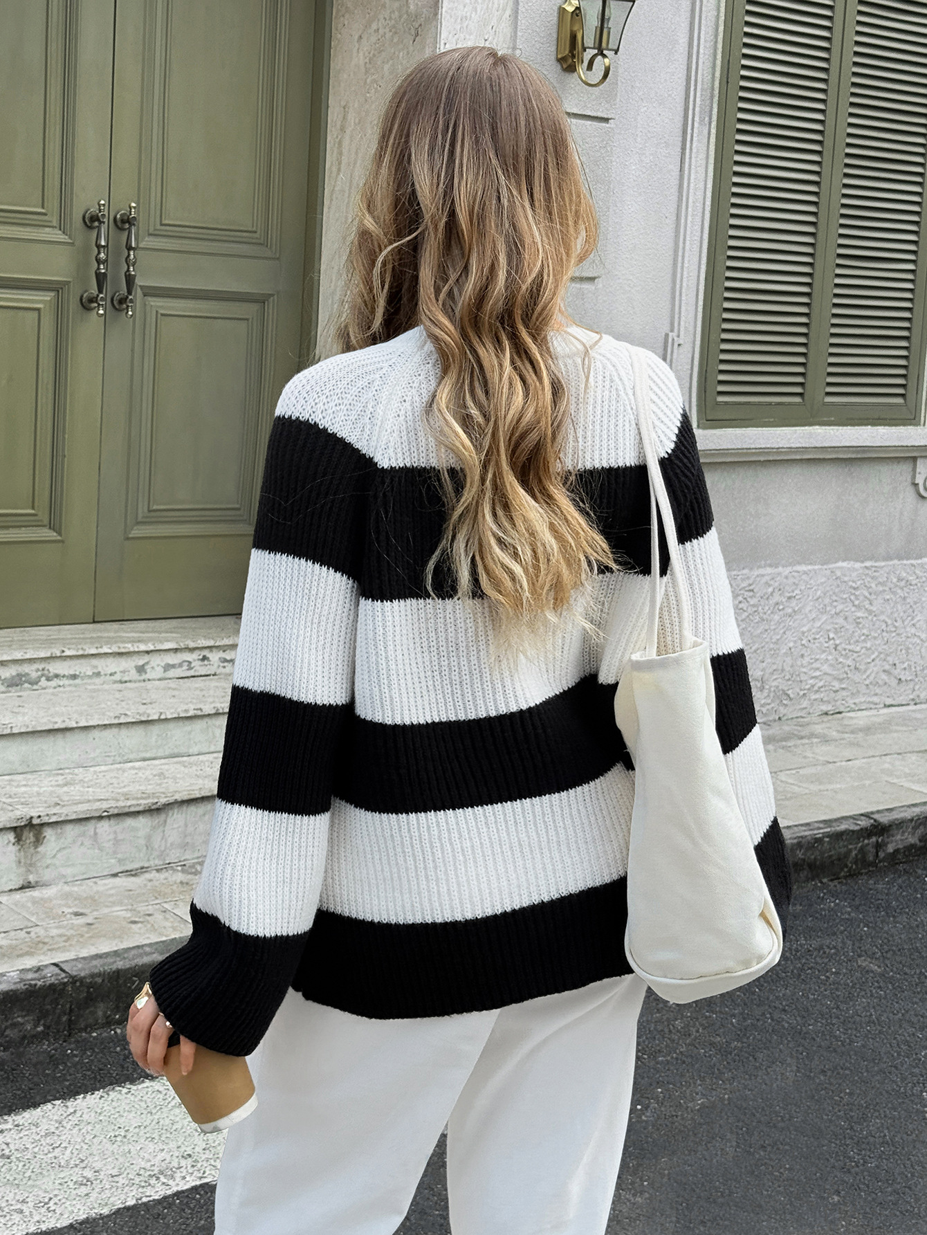 Versatile color blocked long sleeved woolen top sweater