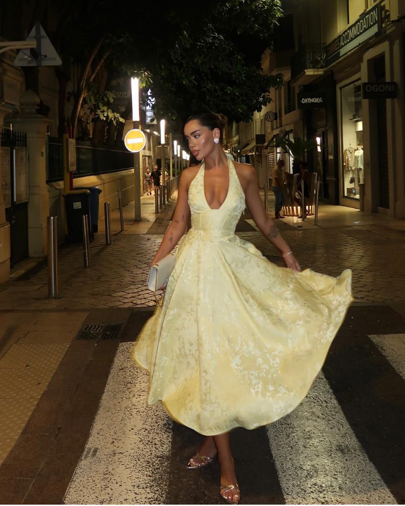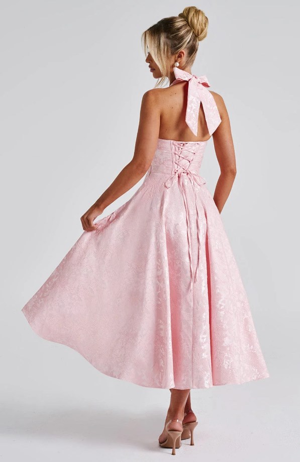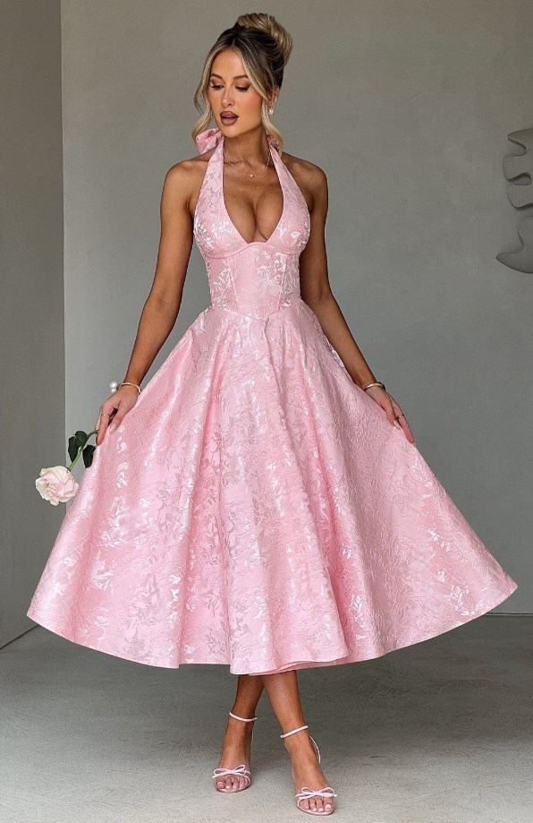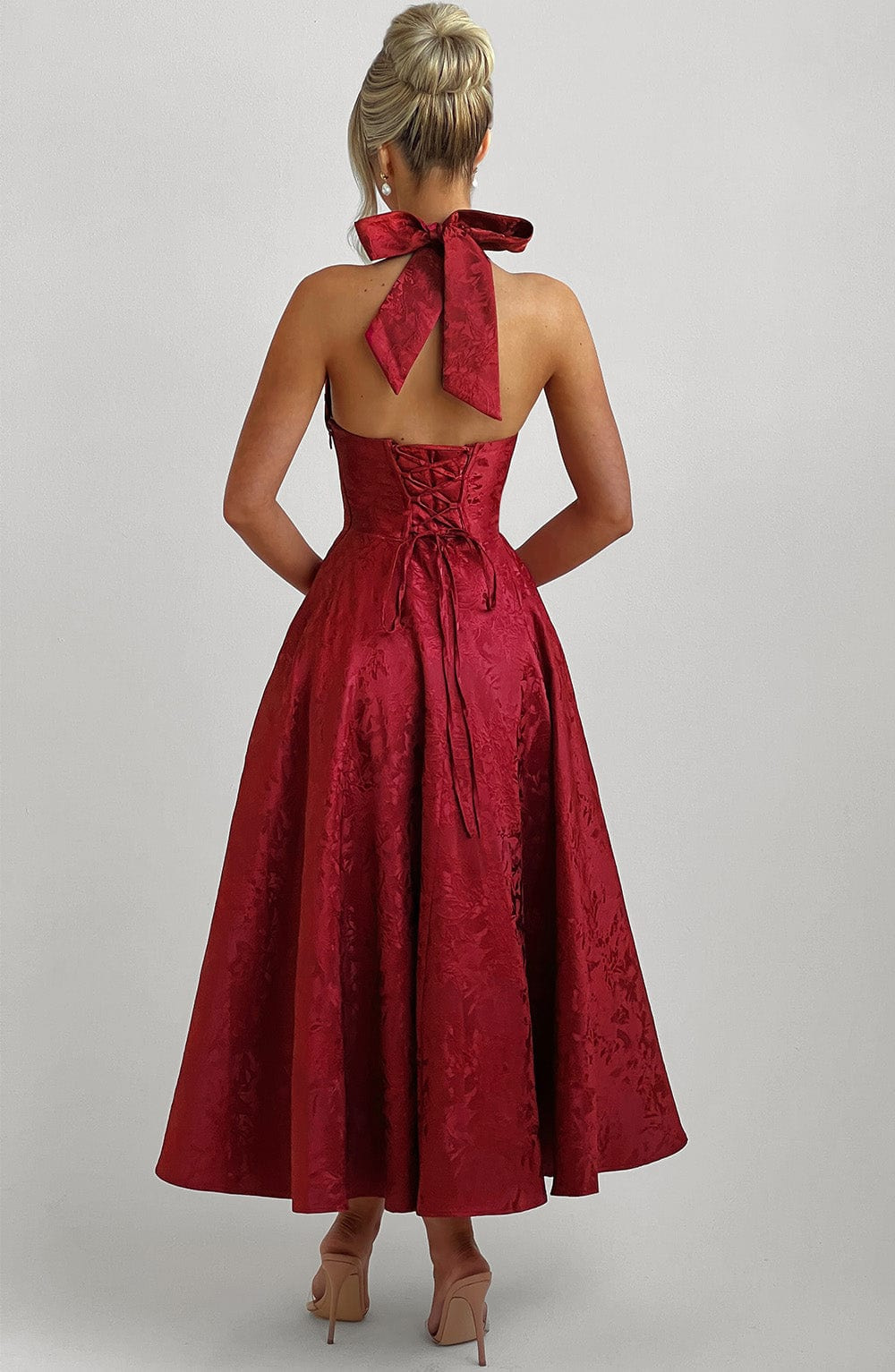 Women's French Holiday Style V-Neck Sleeveless Jacquard Waist-Tied Long Dress Y2K