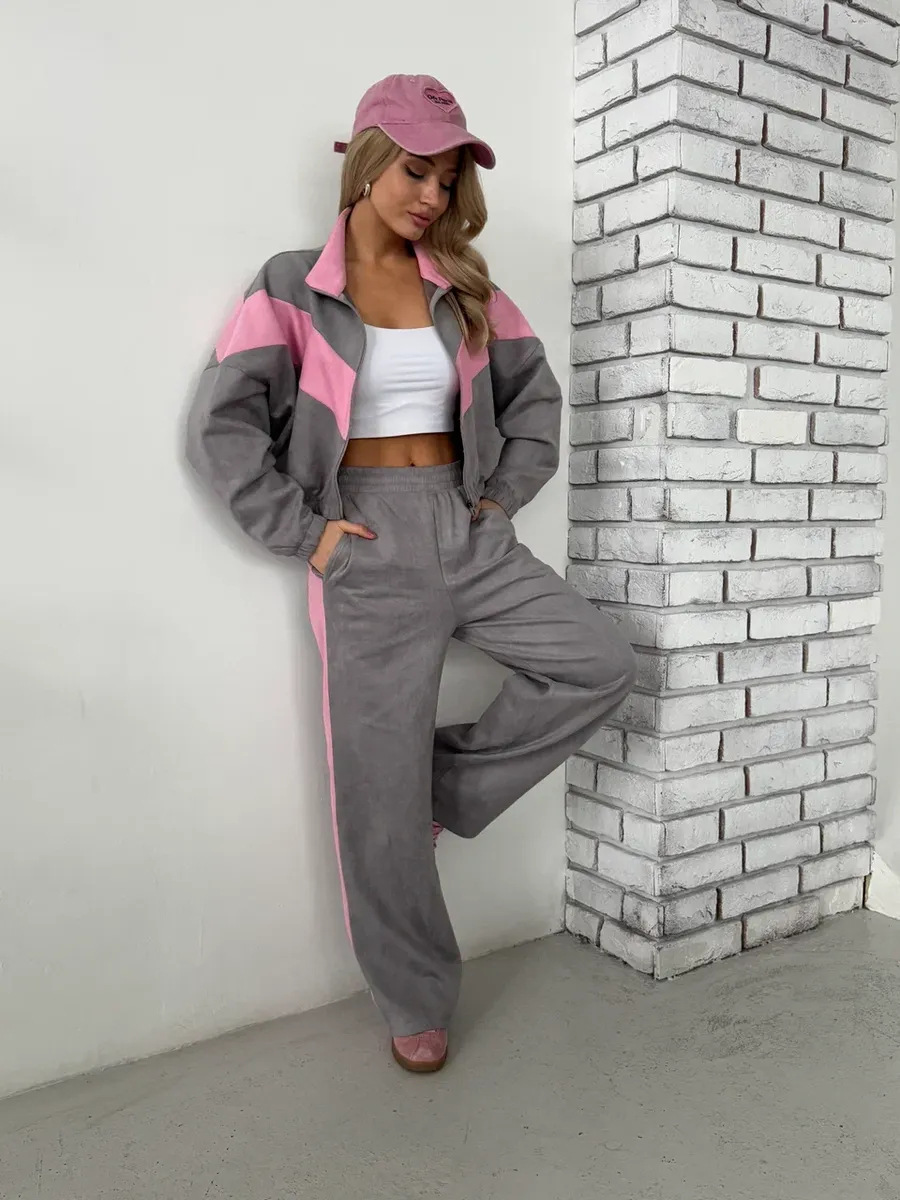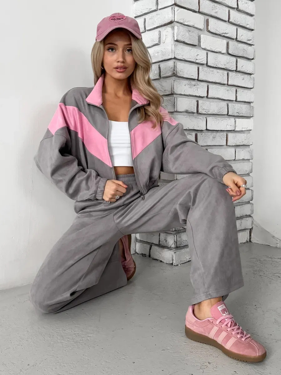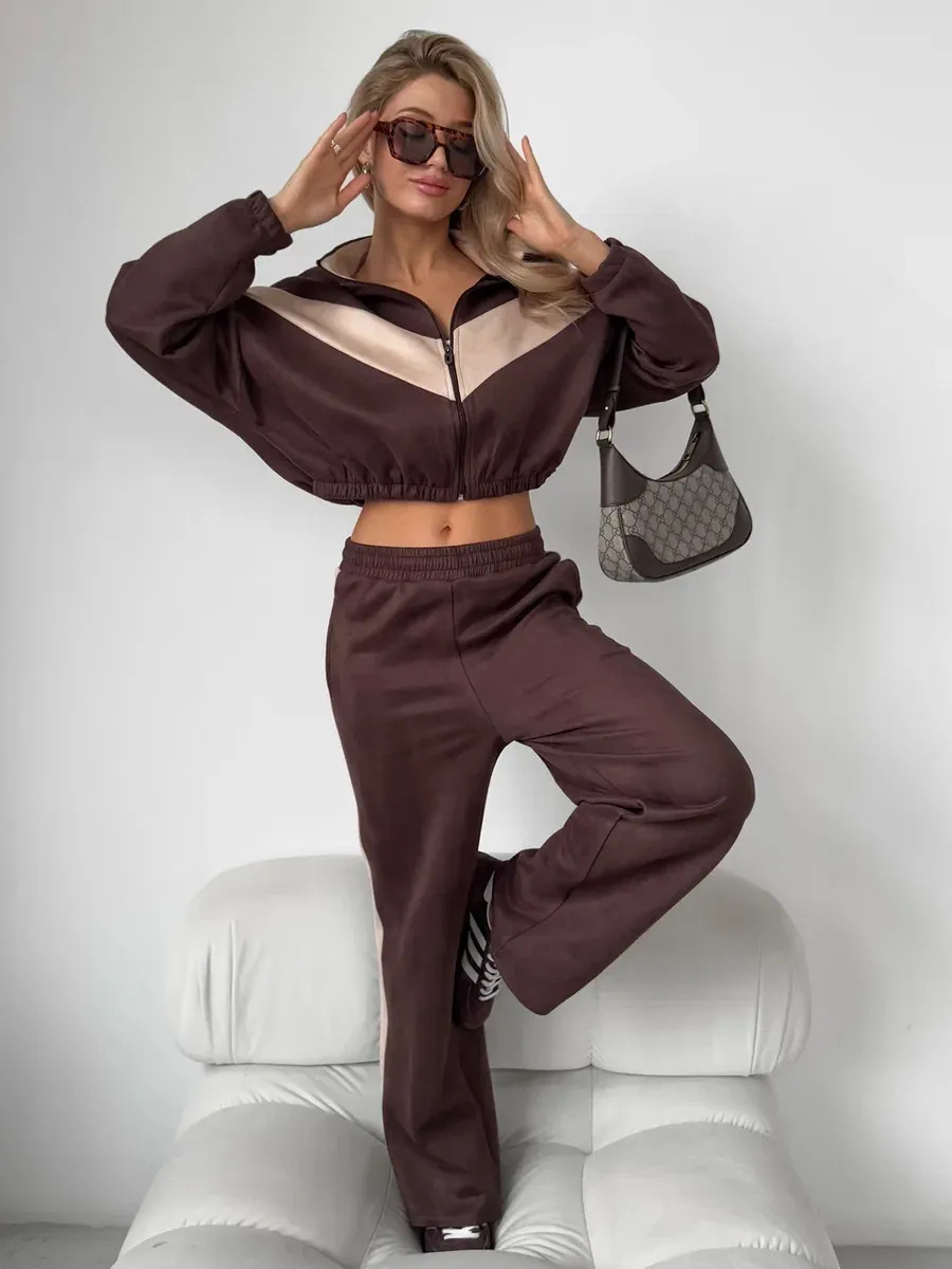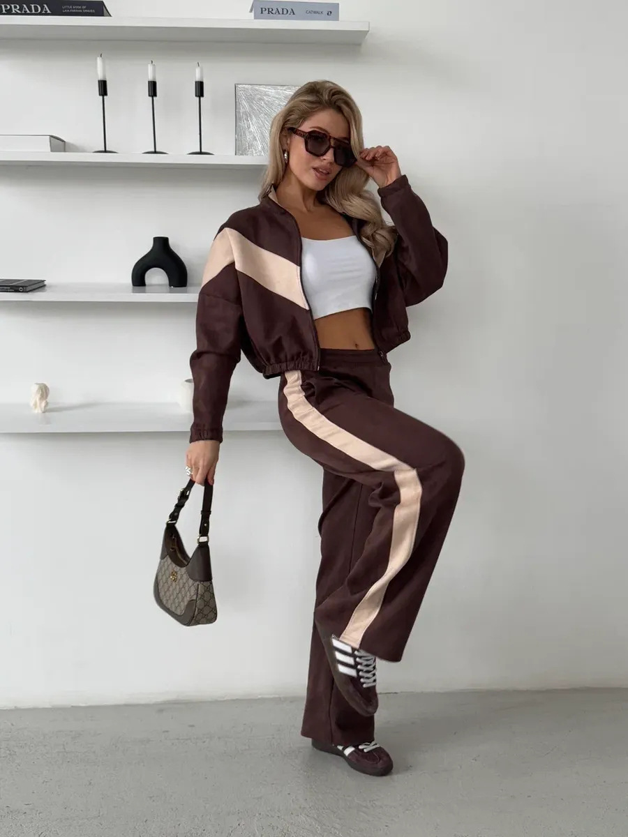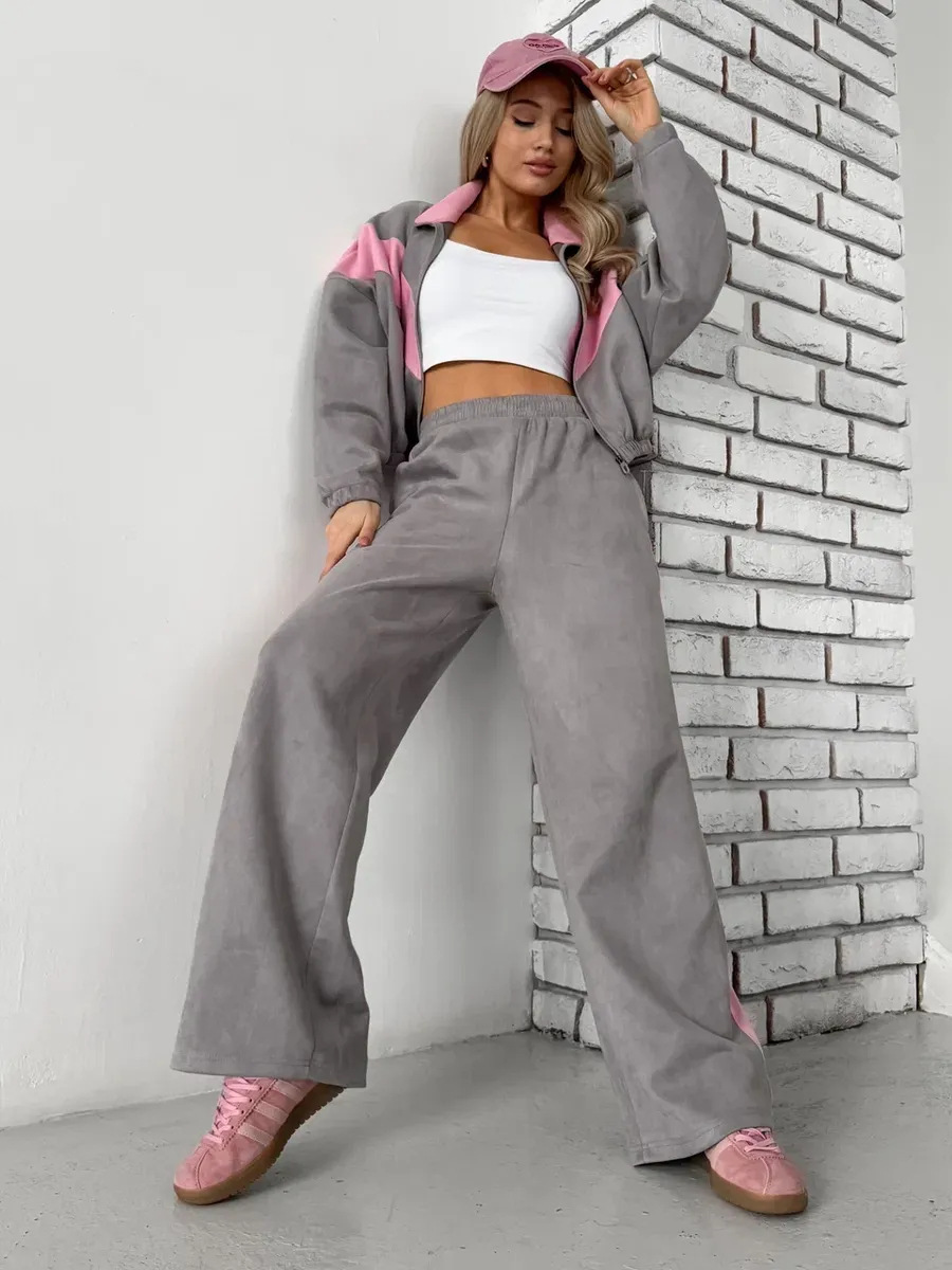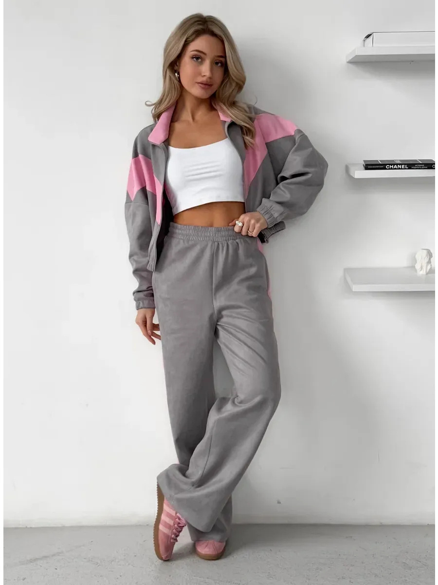Women's long sleeved zipper jacket, elastic long pants two-piece set