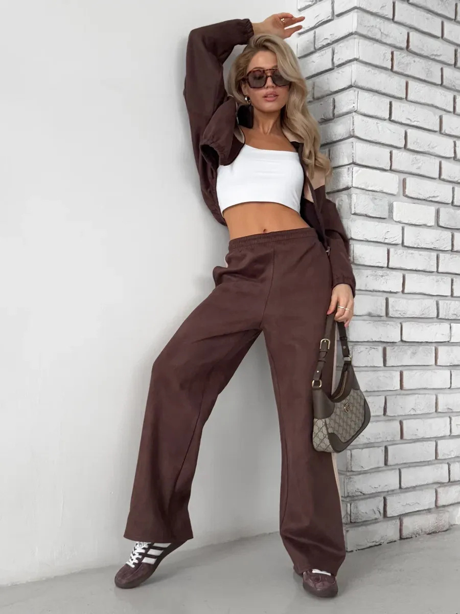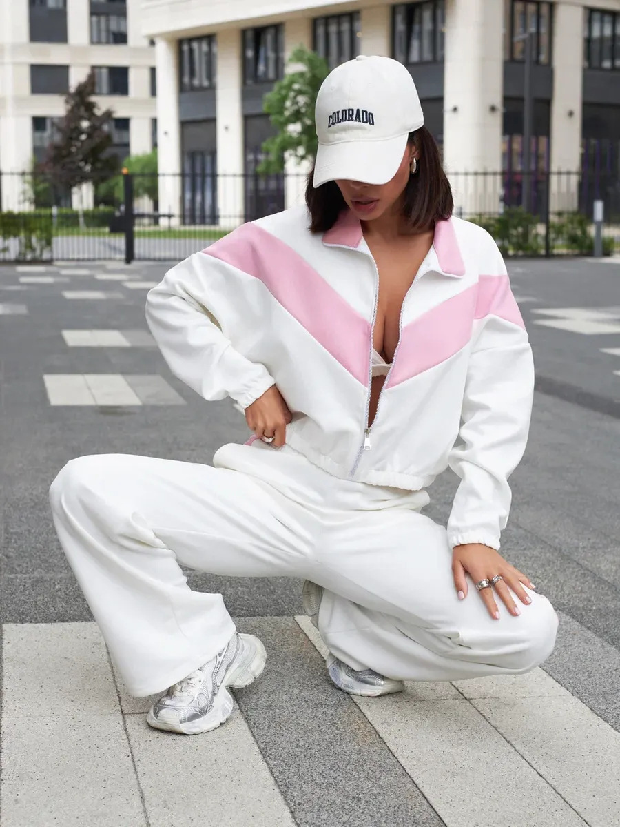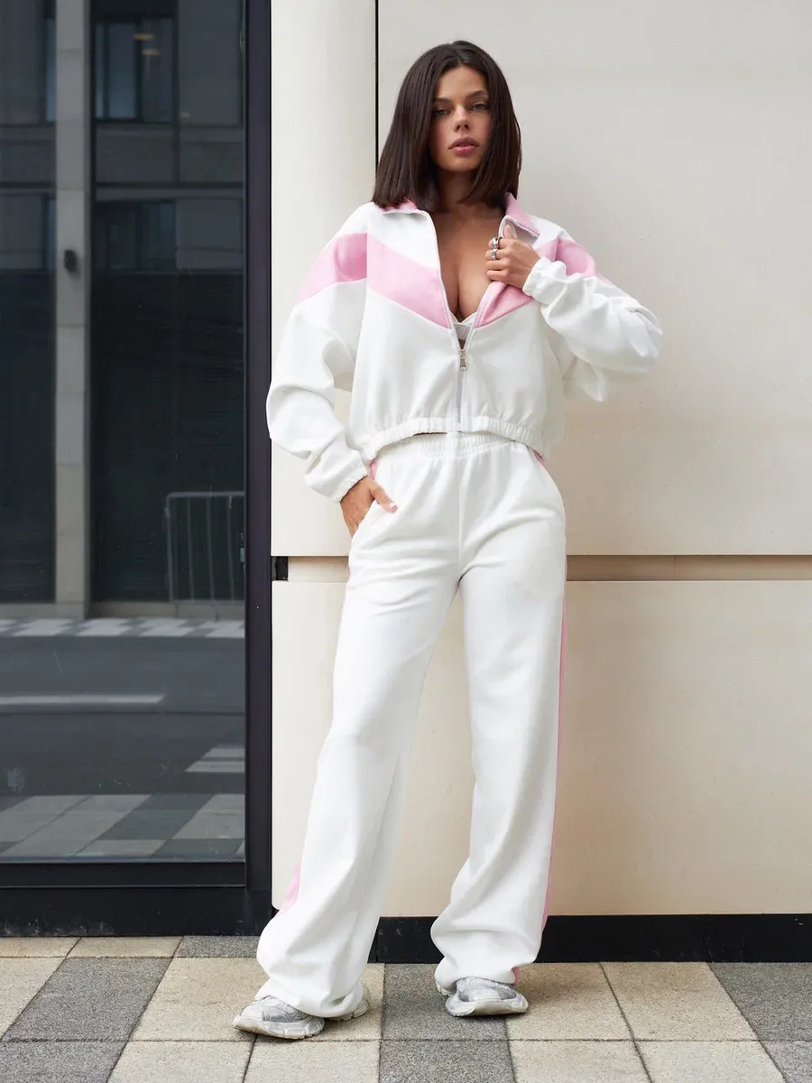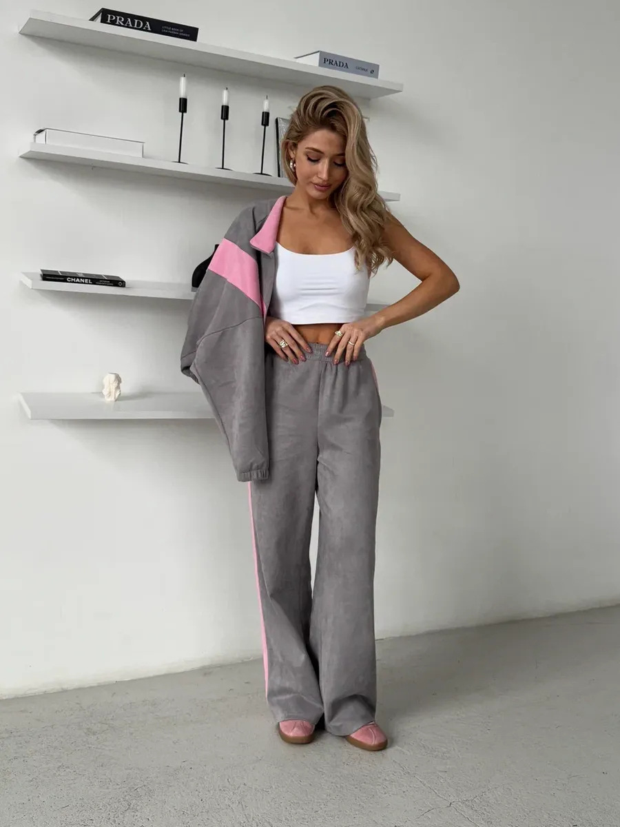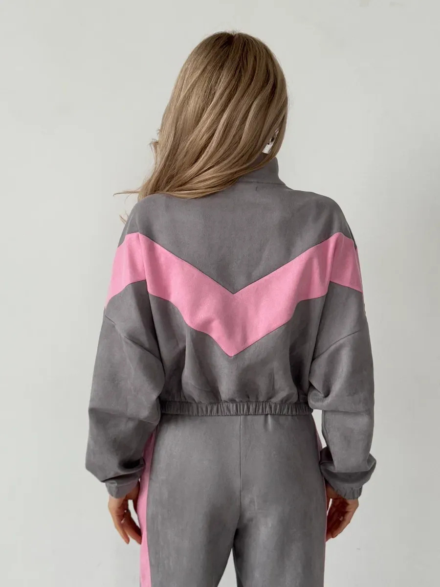 Women's long sleeved zipper jacket, elastic long pants two-piece set