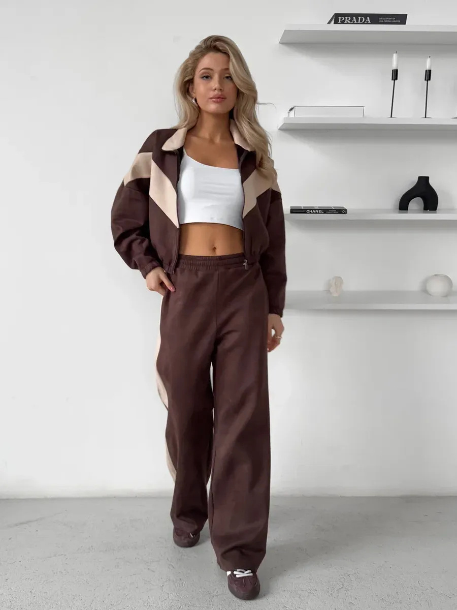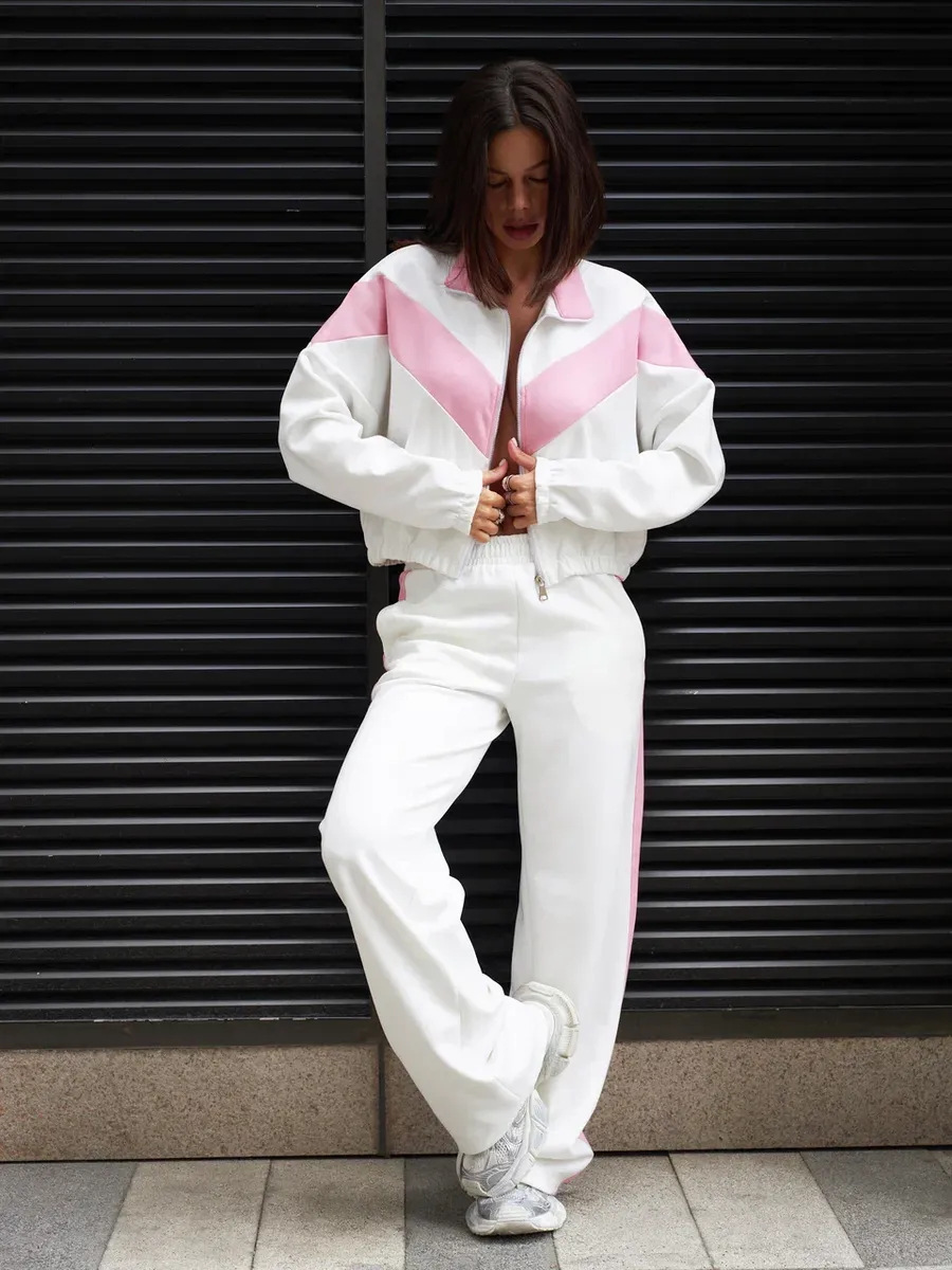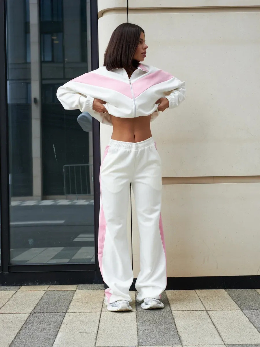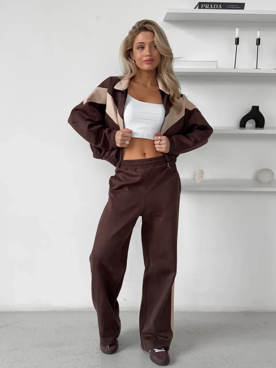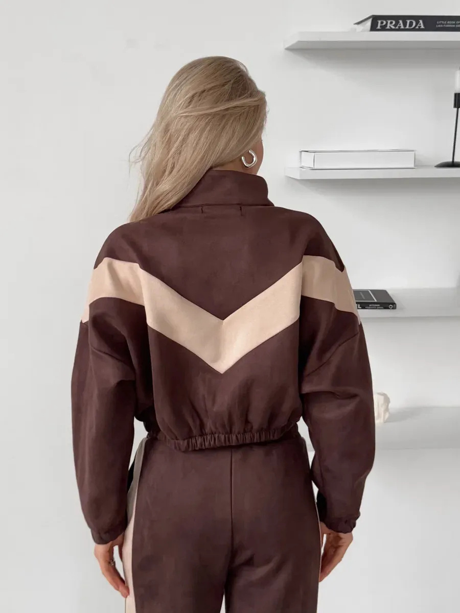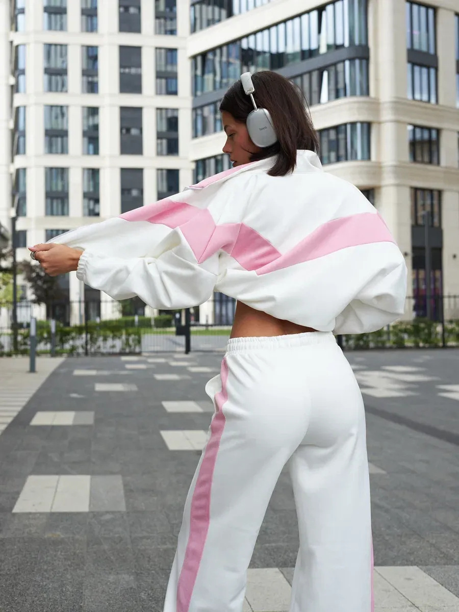 Women's long sleeved zipper jacket, elastic long pants two-piece set