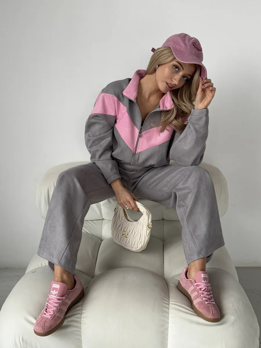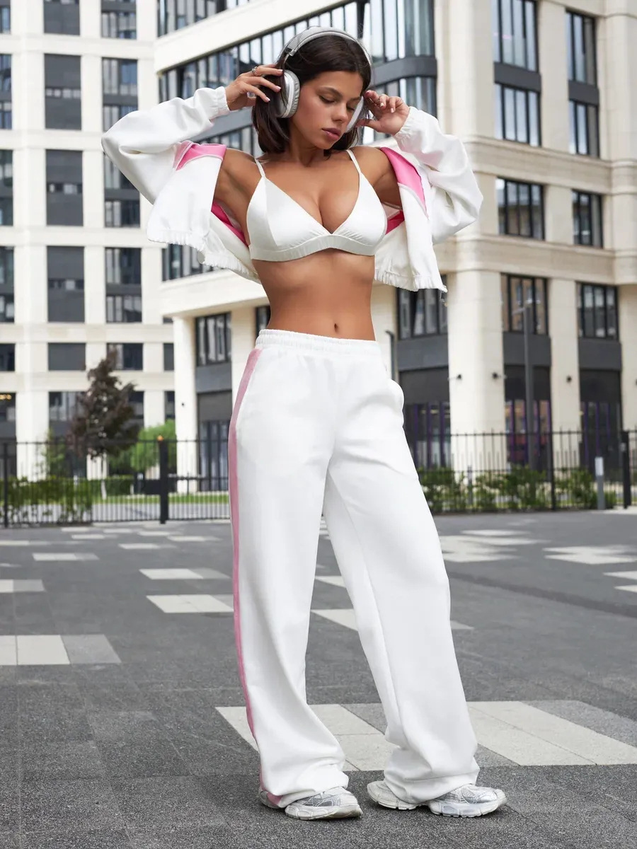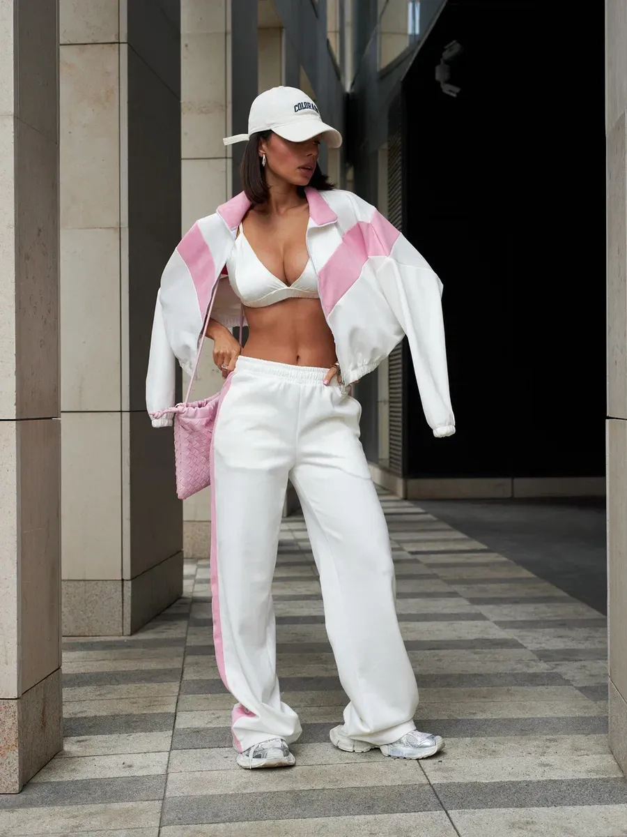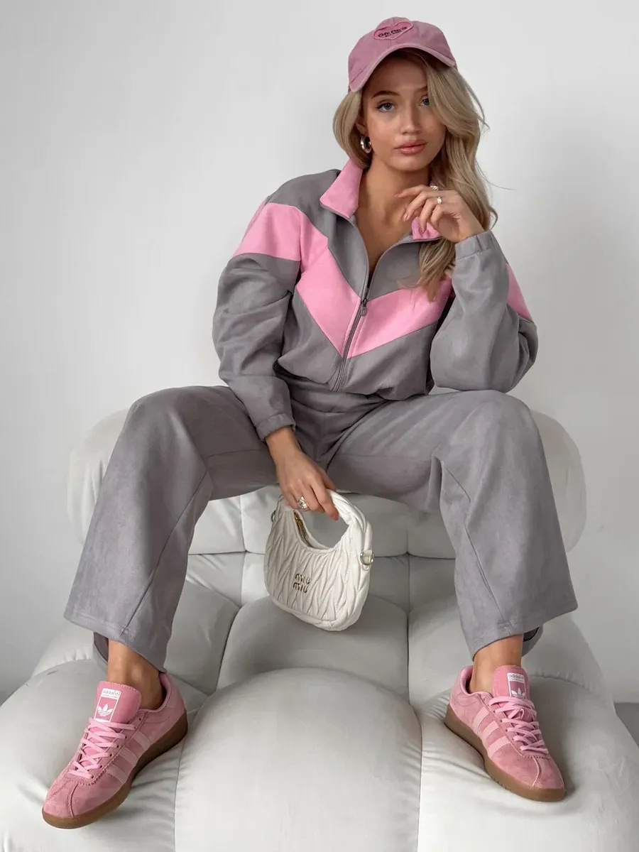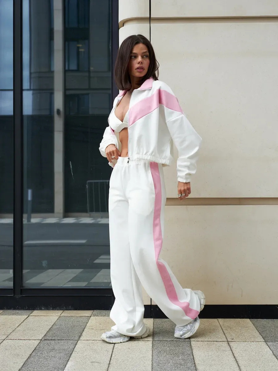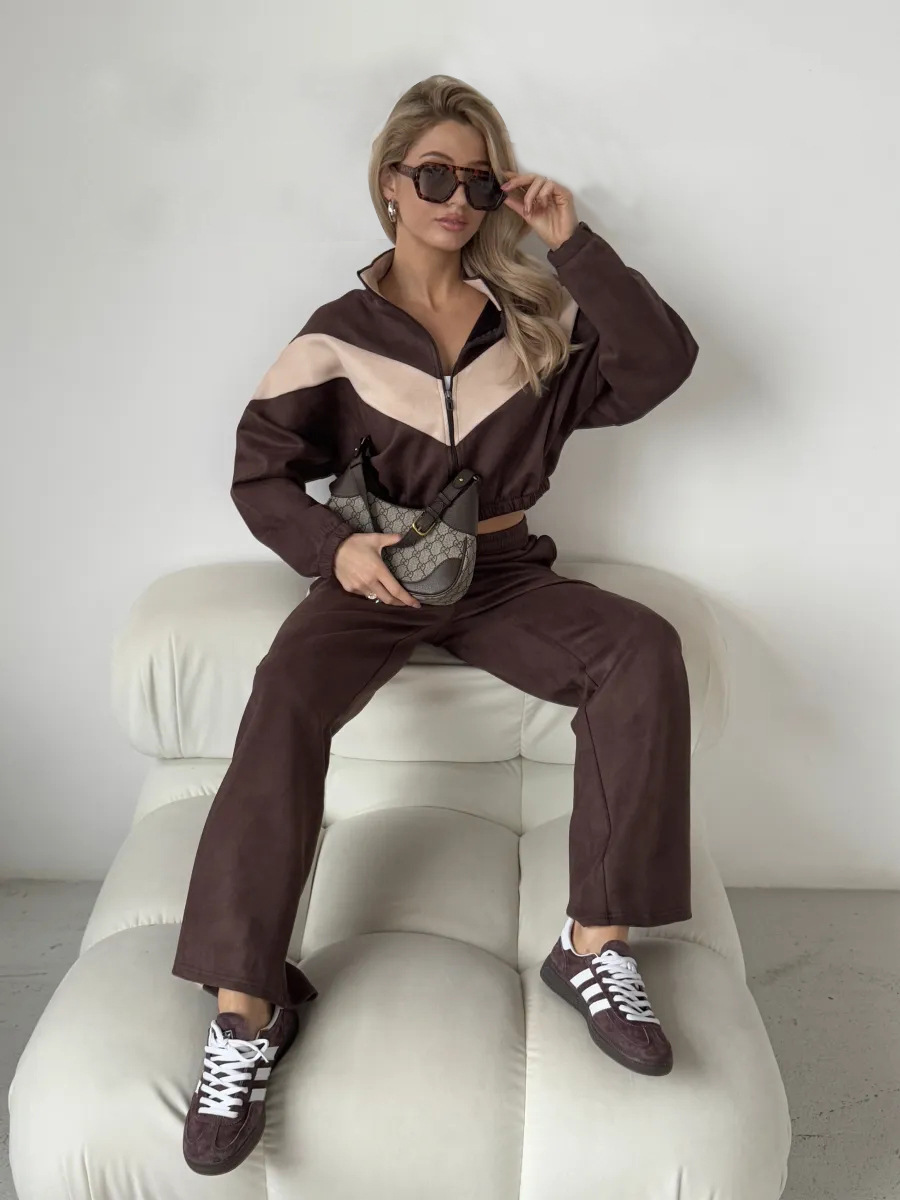 Women's long sleeved zipper jacket, elastic long pants two-piece set