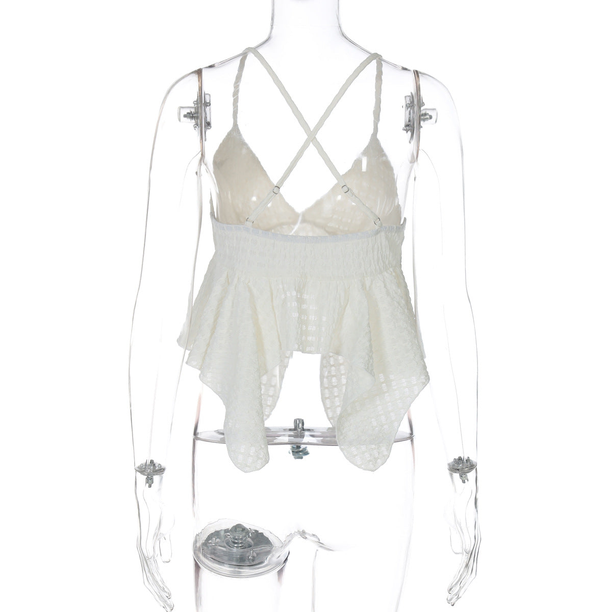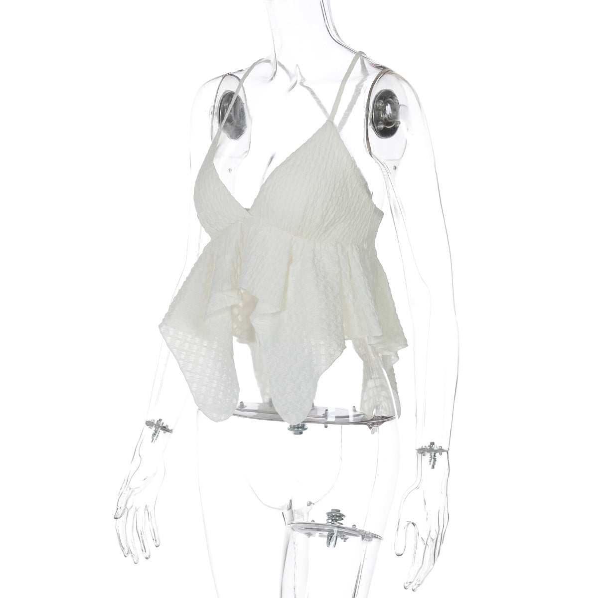 Women's Low-Cut V-Neck Solid Texture Halter Backless Crop Top