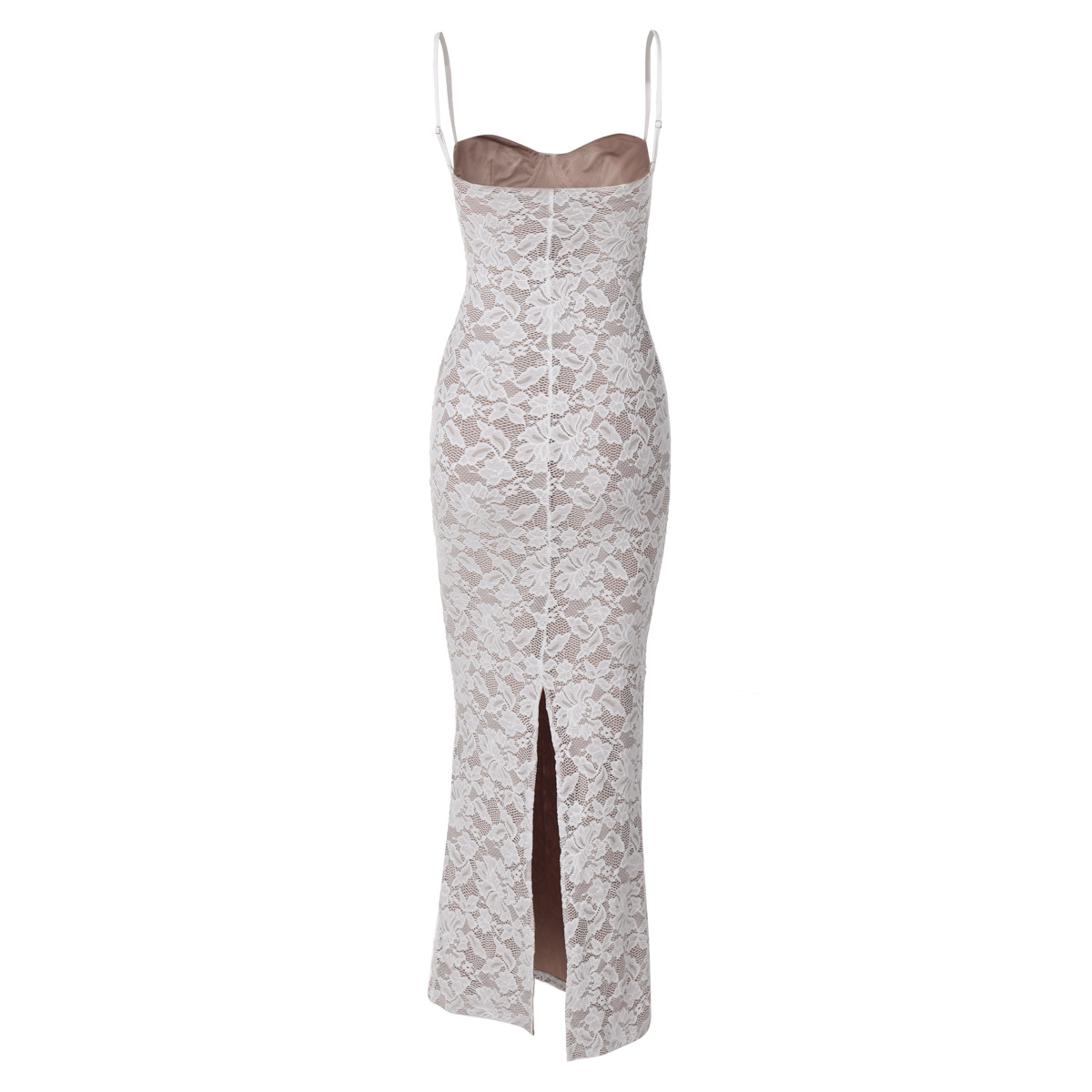 Women's Sexy Lace Splicing Strapless Backless Long Fitted Strap Dress