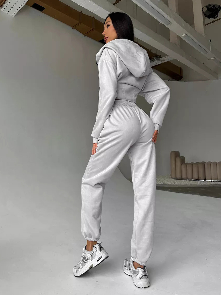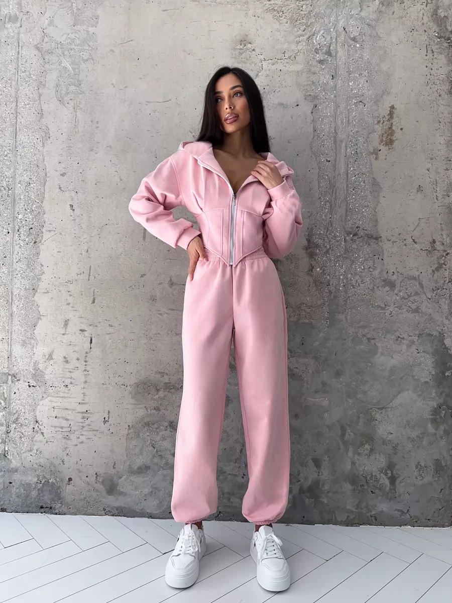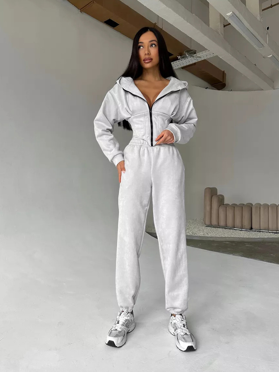 Women's Solid Color Waist Hoodie Pants Set