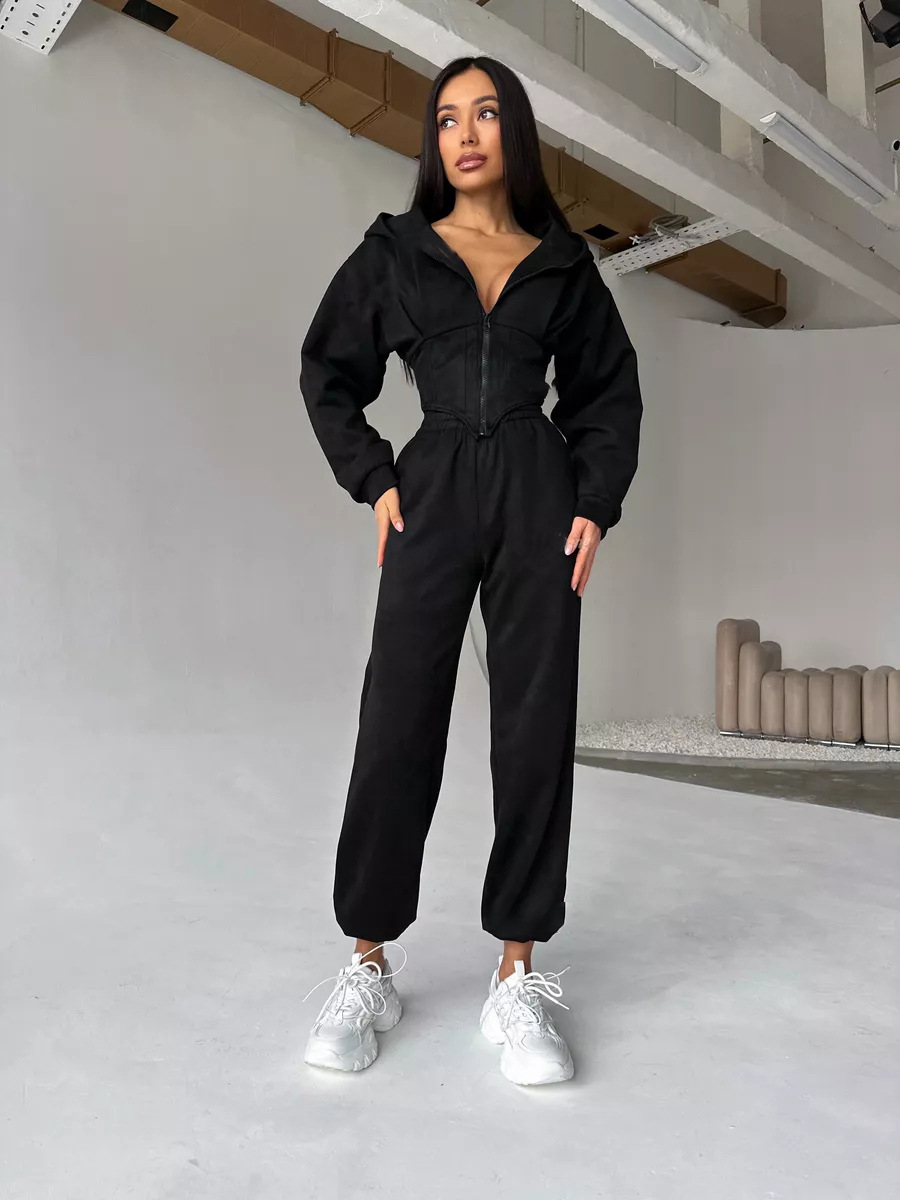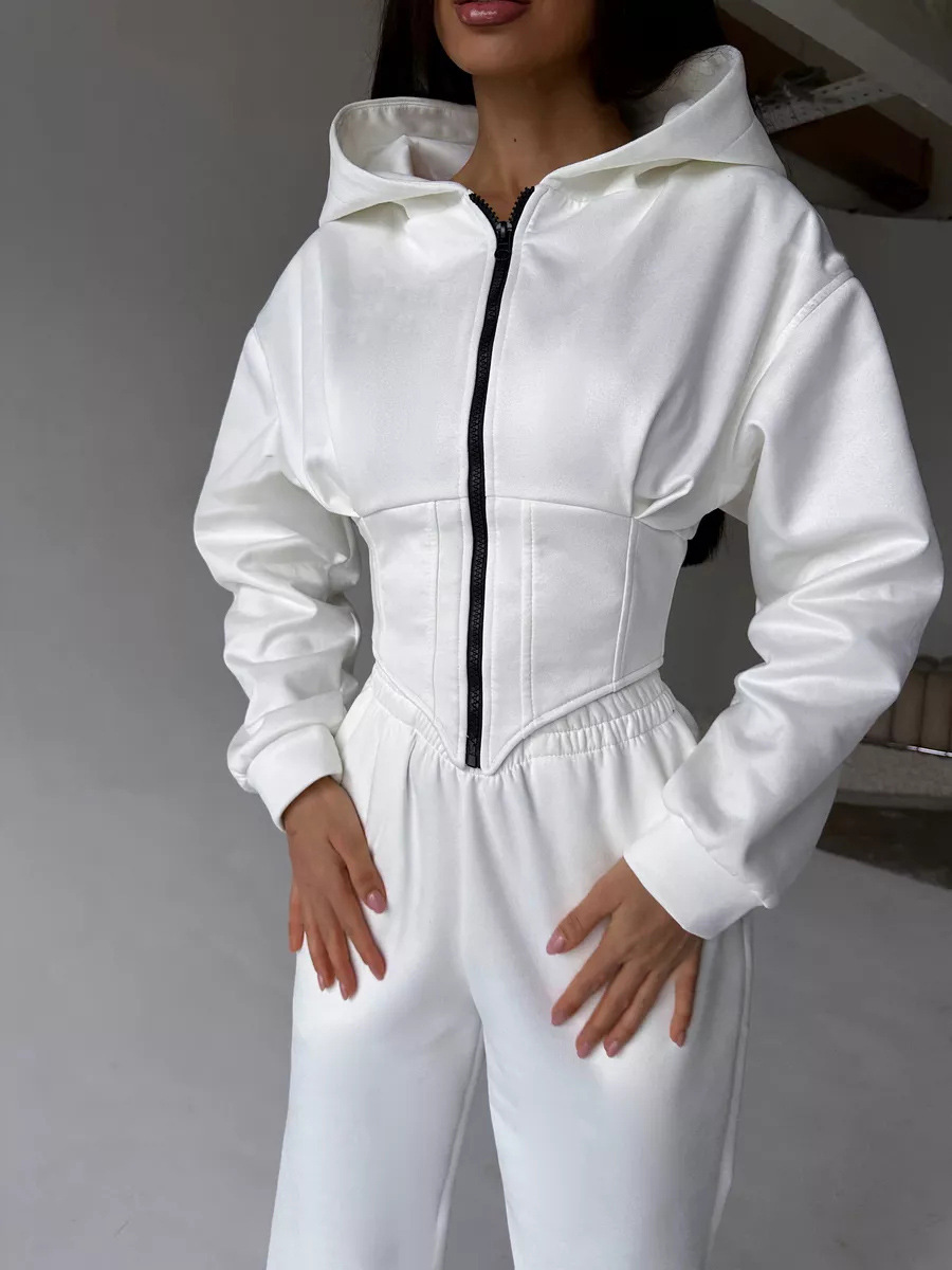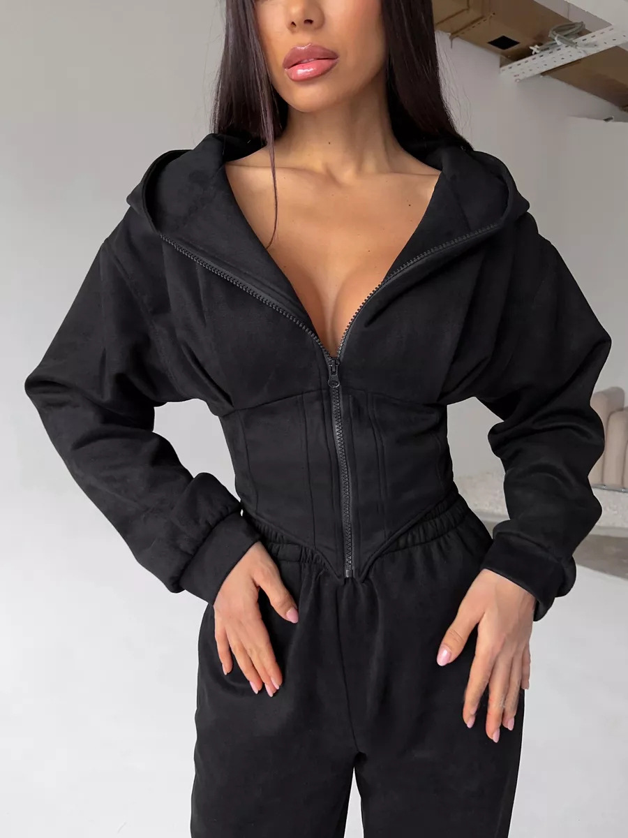 Women's Solid Color Waist Hoodie Pants Set